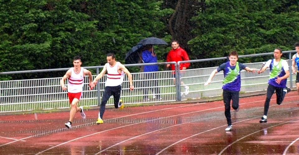 En toutes catégories, 5 représentants du C2A étaient présents, malgré les trombes d’eau qui s’abattaient sur le stade, au 4 x100, 4 x 200 et 4 x 400 :