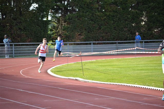 Avec de 2 minimes et 2 Benjamins, l’équipe composée dans l’ordre de Kevin Champagne (MIM en 2’23’’au 800), Alexis Rivoal(BEM 200m), Matéo(BEM 200m) et Titouan Gallet (MIM en 2’13’’au 800) a réalisé une belle prestation puisque, confrontée à des équipes entièrement minimes, elle termine 5ème dans l’excellent chrono de 5’43’’57.