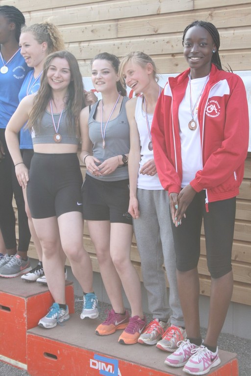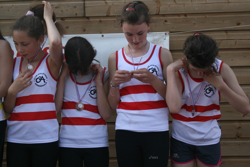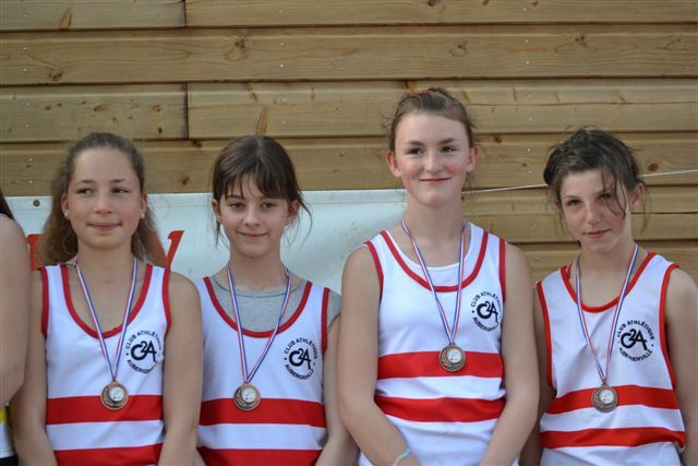 - Relais 800 x 200 x 200 x 800 : Heureuse surprise avec la médaille de bronze de nos benjamines. Bien lancé par la course intelligente d'Amandine Peuchet, ses autres camarades surent maintenir les écarts et remporter cette médaille en 7’01’’24.