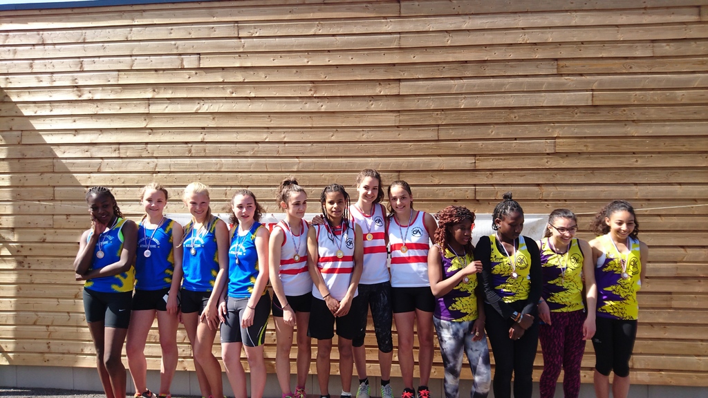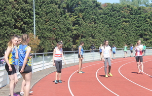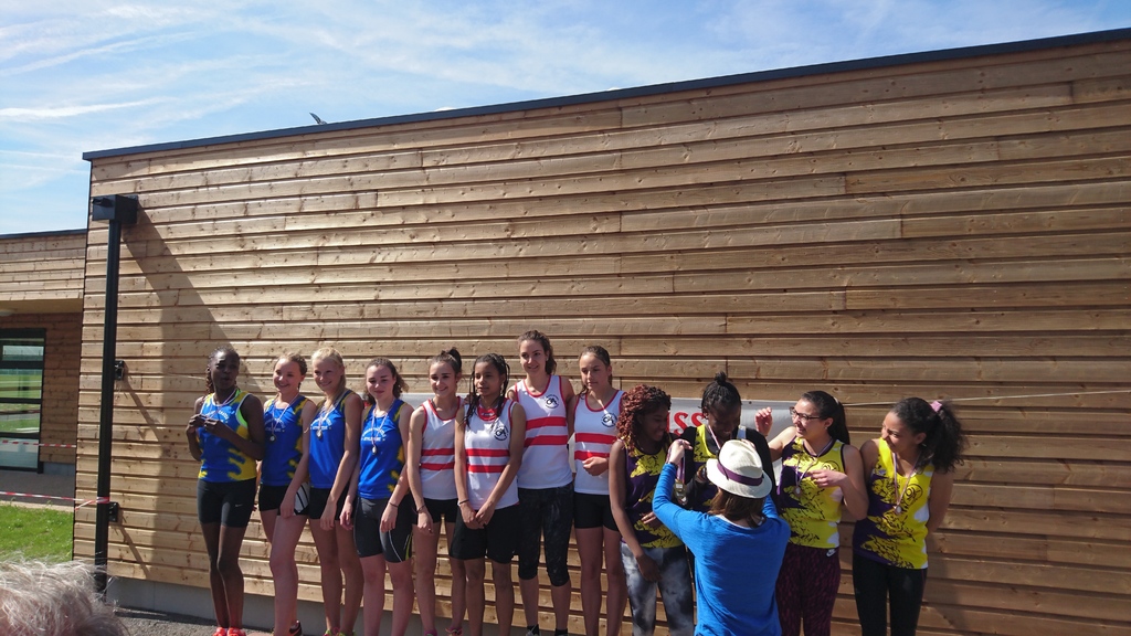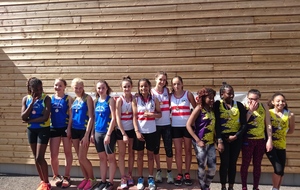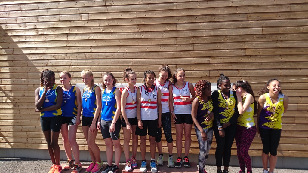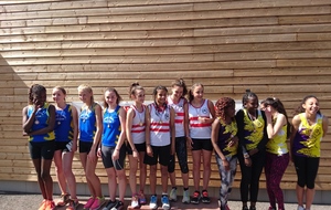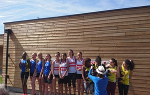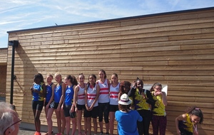 Composition de la deuxième équipe minimes filles sur 4 x 60 m qui réalisa une course très technique et performante notamment au niveau du passage du témoin :