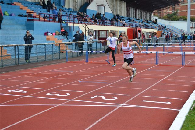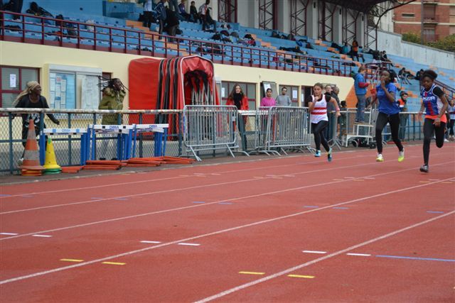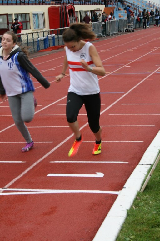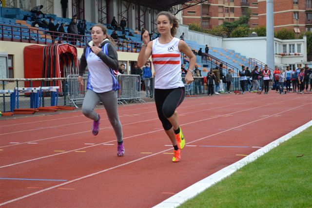 Le froid ambiant ne permit pas à nos sprinteuses de battre leur record mais comme en longueur Emilie QUENON et Emilie MORIN participaient activement à la collecte des points.